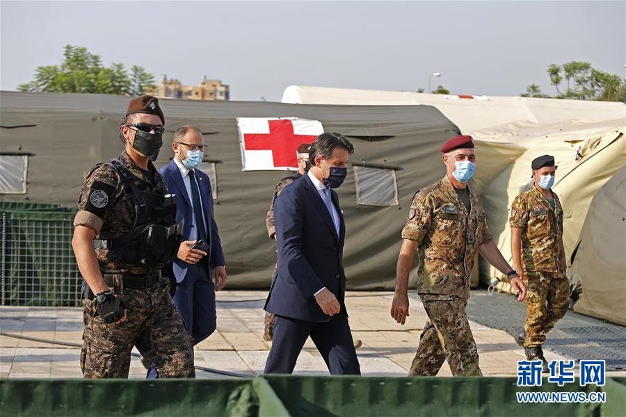 9月8日,在黎巴嫩首都贝鲁特,意大利总理孔特(中)到访由意大利提供的野战医院。 正在黎巴嫩访问的意大利总理孔特8日说,黎巴嫩首都贝鲁特港口区大爆炸发生后,意大利立即向黎巴嫩提供了人道援助,包括派遣救援队、医疗队以及提供野战医院等。意大利将继续向黎巴嫩提供支持,同时希望黎巴嫩尽快组建新政府。 新华社发(比拉尔·贾维希摄)