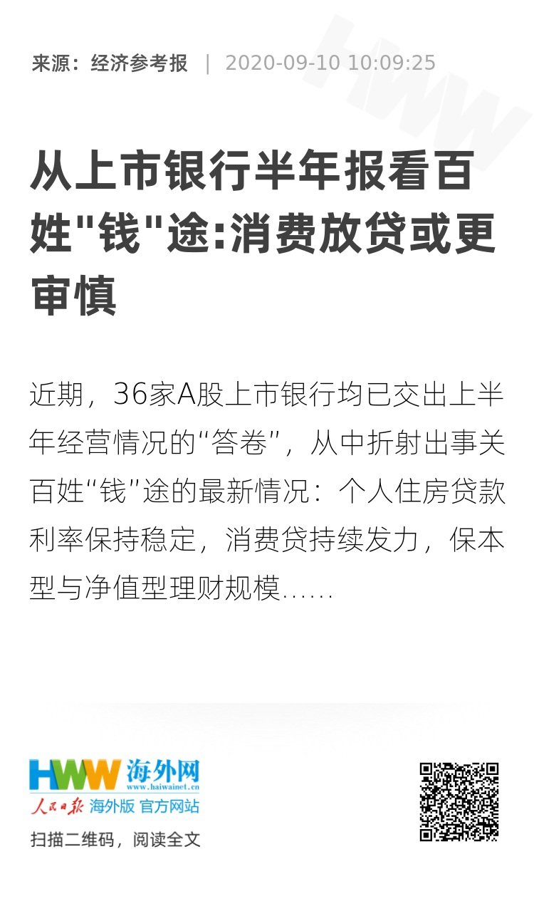 近期,36家A股上市银行均已交出上半年经营情况的“答卷”,从中折射出事关百姓“钱”途的最新情况:个人住房贷款利率保持稳定,消费贷持续发力,保本型与净值型理财规模“此消彼长”……