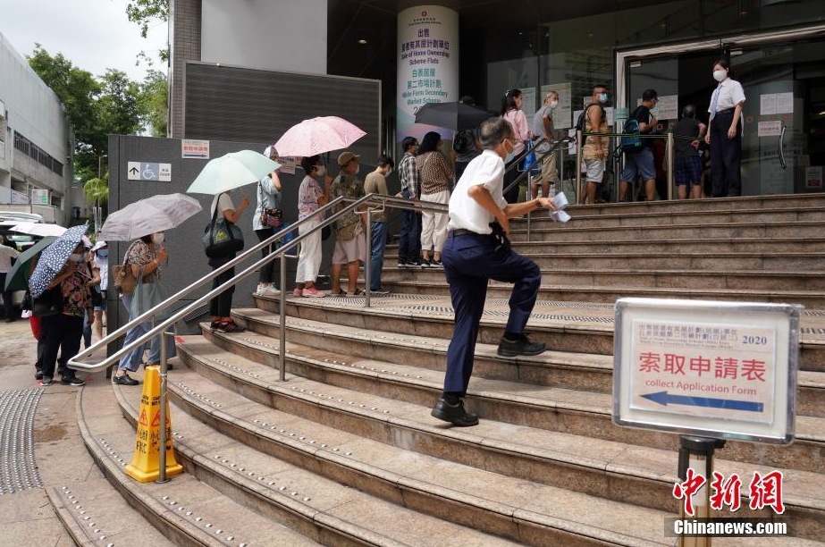 9月10日,香港新一期居屋及白居二(白表居屋第二市场计划)开始接受申请。众多市民在房委会客务中心门前排队领取申请表。受新冠肺炎疫情影响,展示有关楼盘建筑模型与室内间隔模型的客务中心展览厅暂停开放。 中新社记者 张炜 摄