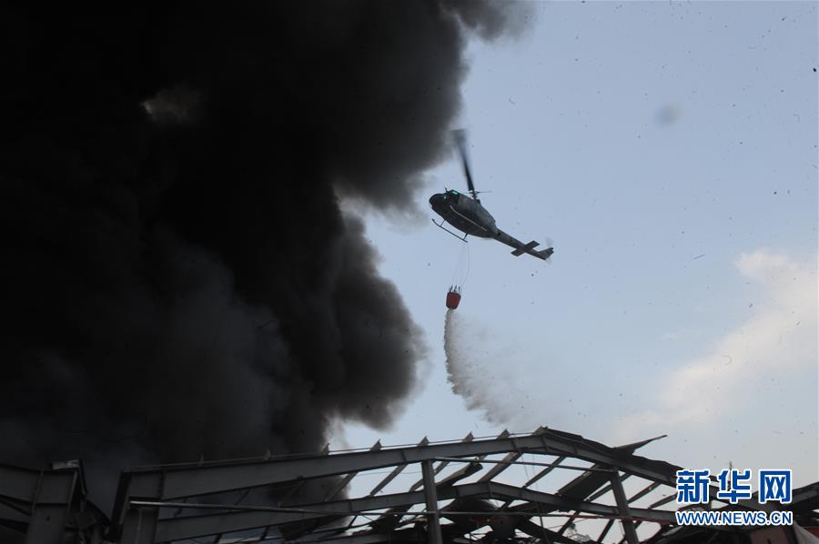 9月10日,军方直升机在黎巴嫩首都贝鲁特港口区灭火。 黎巴嫩首都贝鲁特港口区一处仓库10日发生火灾,暂时没有人员伤亡报告。据当地媒体报道,火灾发生在当地时间13时30分左右。黎军方在社交媒体推特上发表声明说,起火地点为港口免税区内存放轮胎和油料的仓库。 新华社发(比拉尔·贾维希摄)