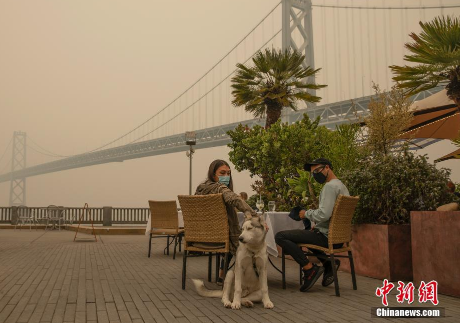 当地时间9月10日,美国加州旧金山空气质量不佳。当日,旧金山湾区的空气质量进一步恶化,旧金山大部分地区和湾区其他地区的空气质量处于“不健康”水平。旧金山湾区保护空气的预警将持续到11日,创下当地空气质量预警持续25天的纪录。 中新社记者 刘关关 摄