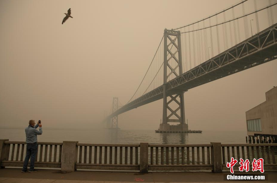 当地时间9月10日,美国加州旧金山空气质量不佳。当日,旧金山湾区的空气质量进一步恶化,旧金山大部分地区和湾区其他地区的空气质量处于“不健康”水平。旧金山湾区保护空气的预警将持续到11日,创下当地空气质量预警持续25天的纪录。 中新社记者 刘关关 摄