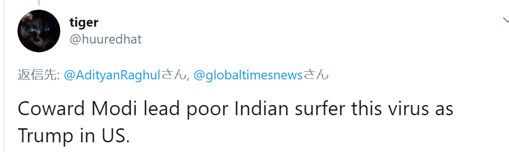“莫迪正带领贫穷的印度人在新冠病毒中‘畅游’,就像特朗普领导的美国一样。”