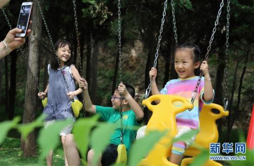 孩子们在兰州皋兰山一处生态园玩耍(2019年8月7日摄)。新华社发(何问摄)