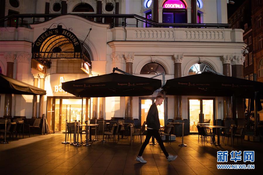 9月14日,一名男子经过英国伦敦莱斯特广场一家餐厅。 根据英国首相约翰逊宣布的疫情防控新举措,自9月14日起,除少数情况外,日常社交场合中的聚集人数不得超过6人,室内室外均适用,违者可能面临罚款等处罚。不过,学校和工作场合等并不受影响。 新华社发(蒂姆·爱尔兰摄)