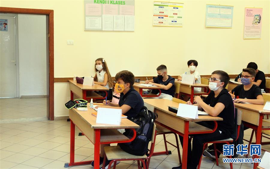 9月14日,阿尔巴尼亚中小学2020-2021学年开学,学生们返校上课。 新华社发(阿尔本·切利 摄)