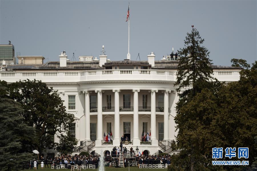 这是9月15日在美国华盛顿白宫拍摄的以色列与阿联酋和巴林关系正常化协议签署仪式。 美国总统特朗普15日在白宫主持以色列与阿联酋和巴林关系正常化协议的签署仪式。巴勒斯坦总统阿巴斯同日表示,如果美国和以色列不承认巴勒斯坦人民的合法权利,中东地区不可能实现和平。 新华社发(沈霆摄)