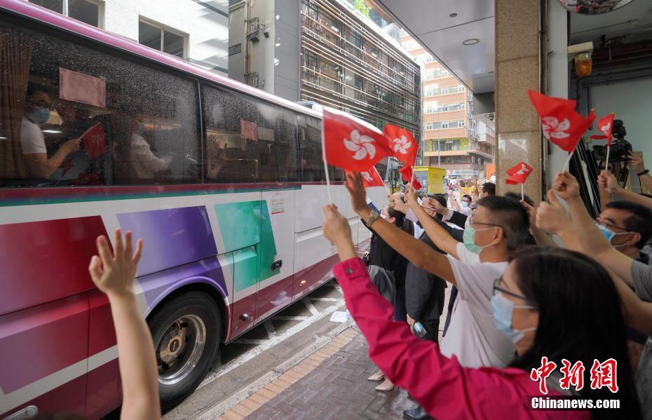 9月16日上午,内地核酸检测支援队圆满完成支援香港抗疫工作后启程返回内地。香港市民和社团代表来到部分支援队员下榻的湾仔华美粤海酒店,欢送支援队员返程。中新社记者 张炜 摄