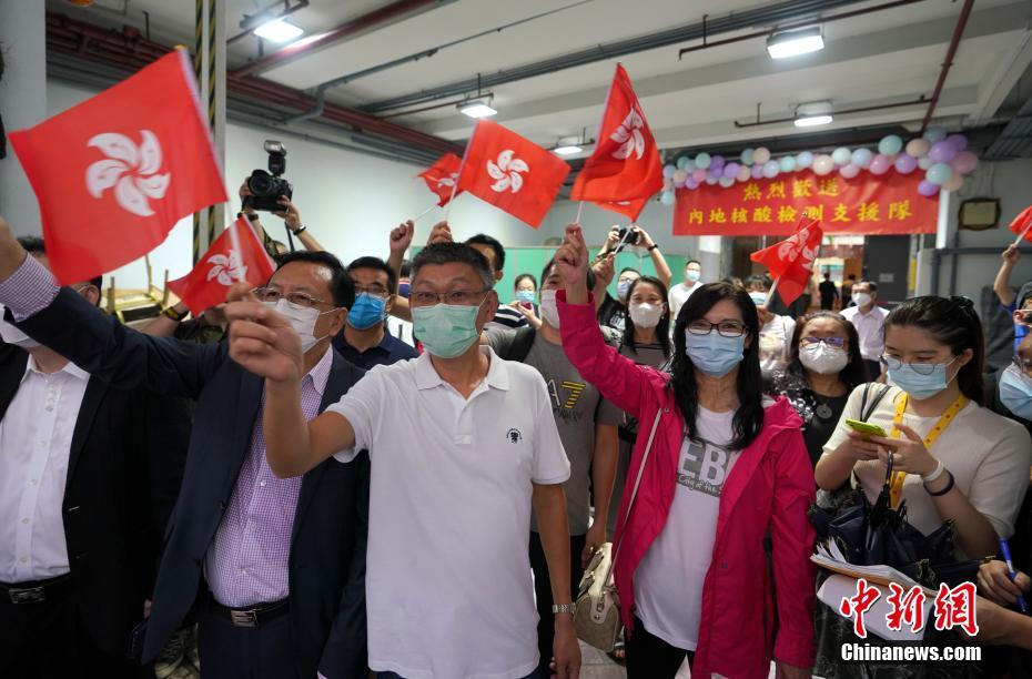 9月16日上午,内地核酸检测支援队圆满完成支援香港抗疫工作后启程返回内地。香港市民和社团代表来到部分支援队员下榻的湾仔华美粤海酒店,欢送支援队员返程。中新社记者 张炜 摄