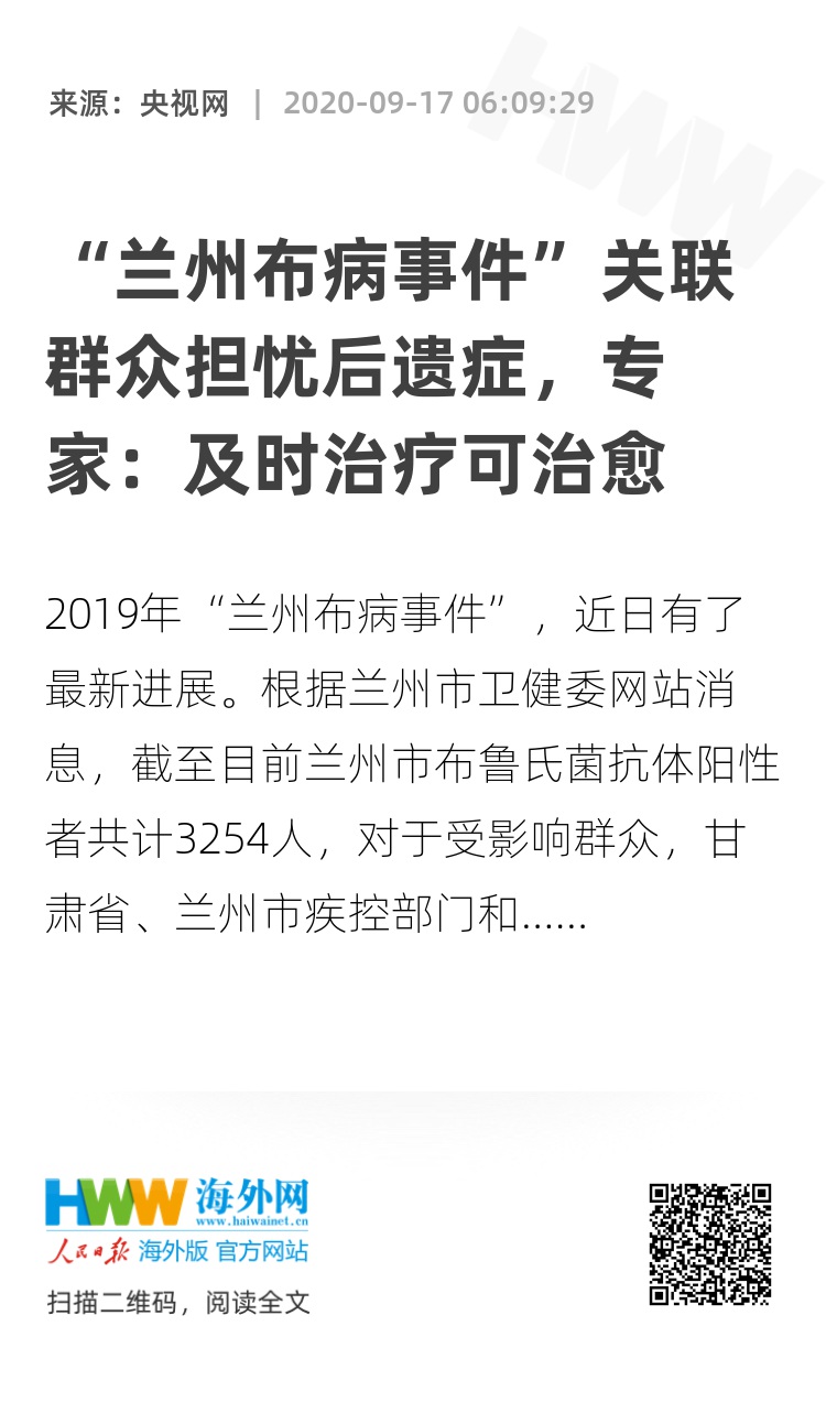 “兰州布病事件”关联群众担忧后遗症,专家:及时治疗可治愈
