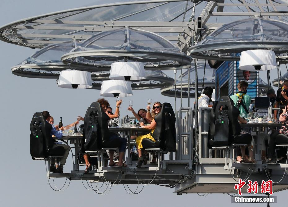 比利时“空中餐厅”顾客悬空享美食 就餐体验独特