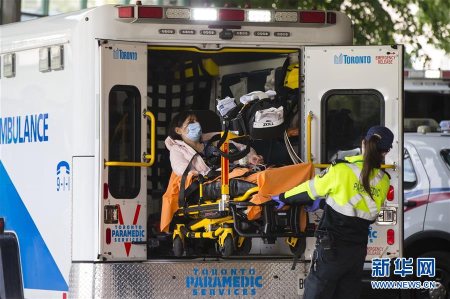 9月17日,在加拿大多伦多,医护人员将一名患者送到医院。 加拿大累计新冠确诊病例升至140539例,累计死亡9199例。 新华社发(邹峥摄)