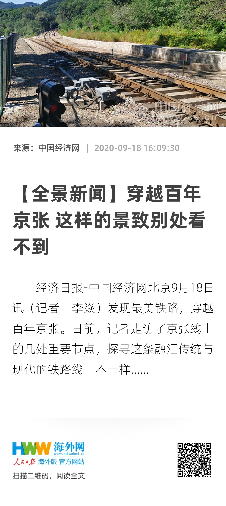 一步一景,大美京张。从京张铁路到京张高铁,京张线穿越百年,正书写着中国铁路和中国社会高速发展的崭新篇章。
