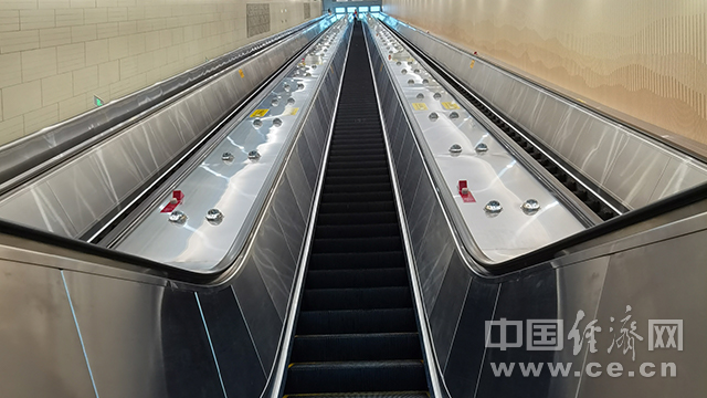 京张高铁八达岭长城站提升高度达到40米的进站电梯(经济日报-中国经济网记者李焱 摄)