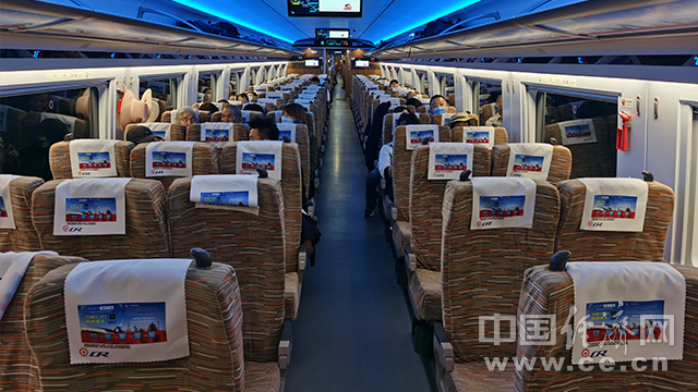 京张高铁智能型复兴号动车组列车车厢内部(经济日报-中国经济网记者李焱 摄)