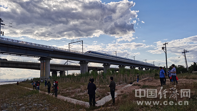 京张高铁列车通过官厅水库特大桥。(经济日报-中国经济网记者李焱 摄)