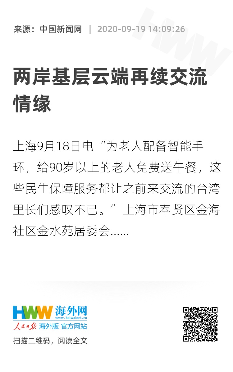 陆杰表示,两岸社区交流还是以居民服务为主,两岸可能在文化上存在一些差异,但总的服务目标相同,如何提升双方的服务内容和服务方式,就需要两岸社区的管理者们互相交流,互相借鉴,互相学习。现在通过视频连线的方式也拓宽了我们的交流渠道,感觉非常好。 (记者 缪璐)