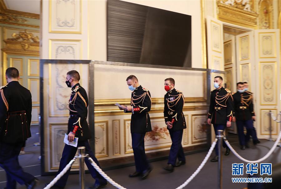 9月19日,在法国总统府爱丽舍宫,警卫穿过大厅。 为期两天的欧洲遗产日于19日拉开帷幕。受新冠肺炎疫情反弹影响,法国部分疫情严重地区宣布取消今年的遗产日活动。如期召开的遗产日活动中也对观众人数进行了严格限制,活动要求参观者提前在网上预约,参观过程中必须佩戴口罩,保持安全距离等。法国总统府爱丽舍宫今年将参观人数限制在每天2500人,为以往参观人数的三分之一。欧洲遗产日活动源于法国。最初这项活动定于每年9月的第三个周日举办,1992年改为周六和周日两天举行。如今,遗产日活动已经扩展到欧洲各国,成为整个欧洲的一项重要文化活动。 新华社记者 高静 摄