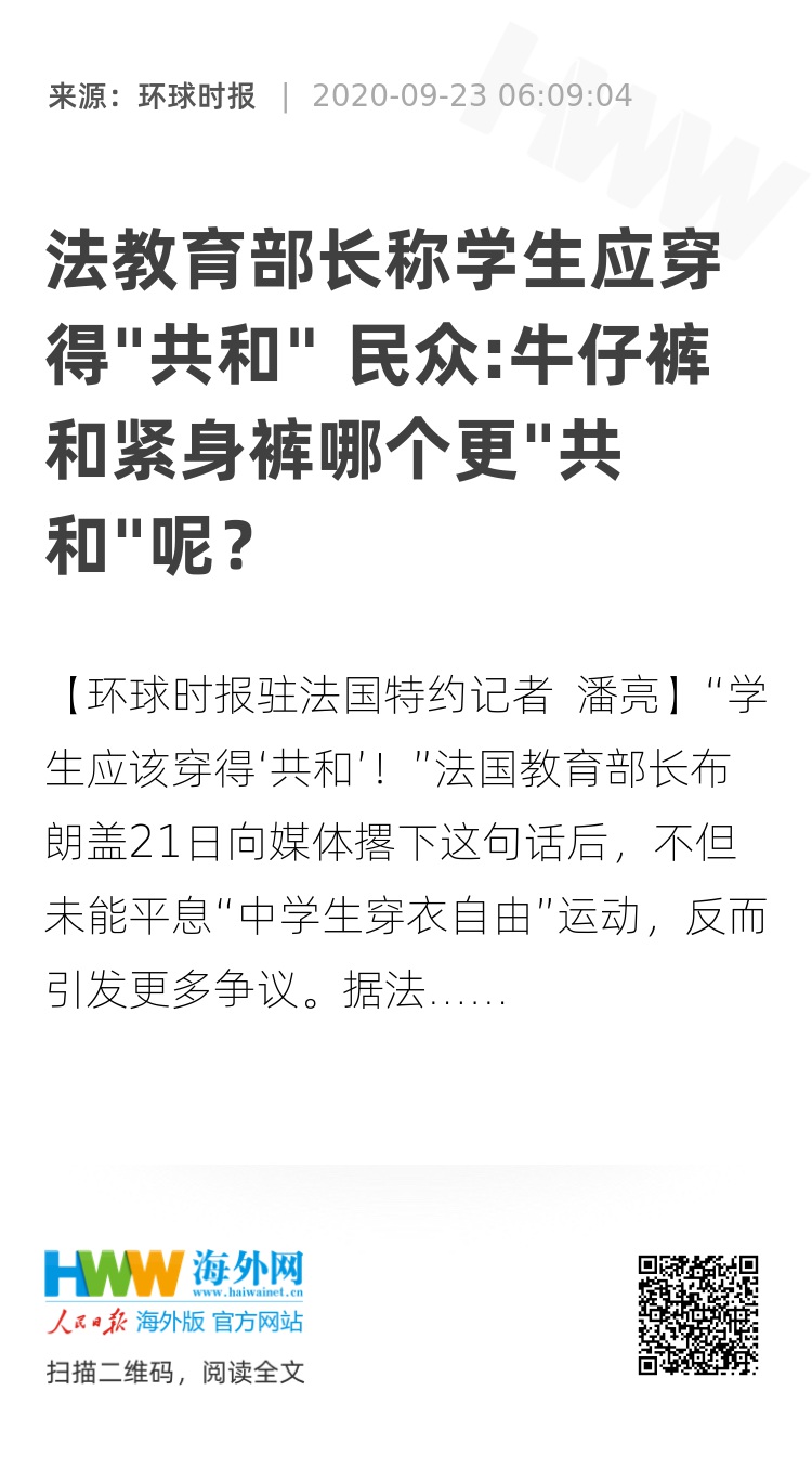 原标题:《法教育部长称学生应穿得“共和”,法媒:很多学生表示不知所云》