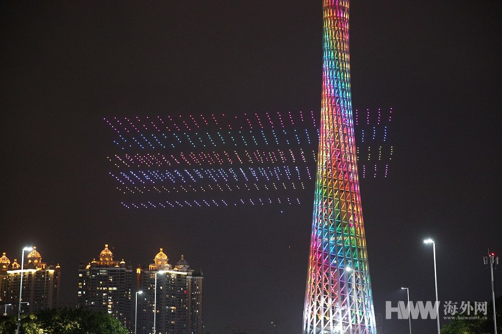 广州塔上演千架无人机表演 庆祝农民丰收节