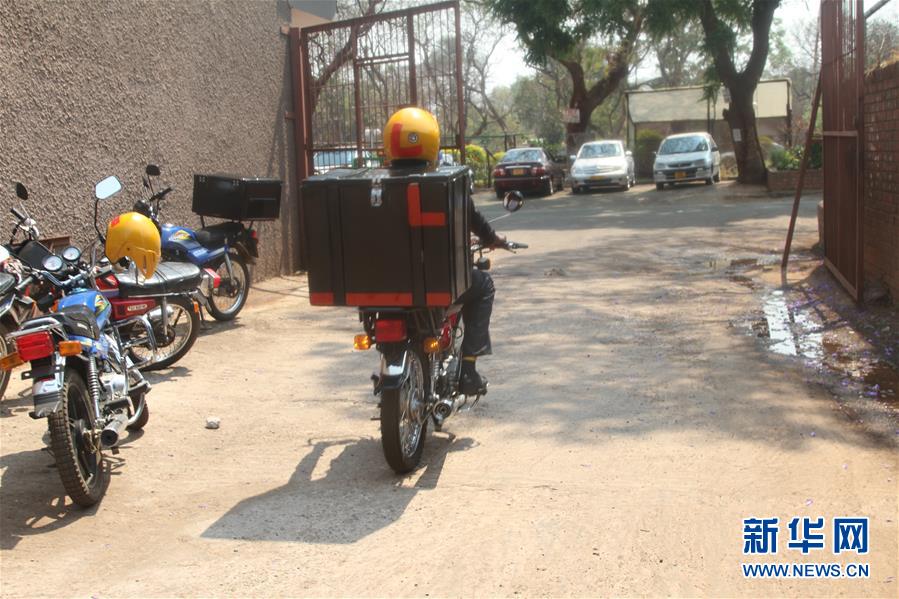 9月16日,在津巴布韦首都哈拉雷,“一盒生鲜”工作人员骑摩托车为顾客配送食品。 新华社发(塔法拉·穆瓜拉 摄)