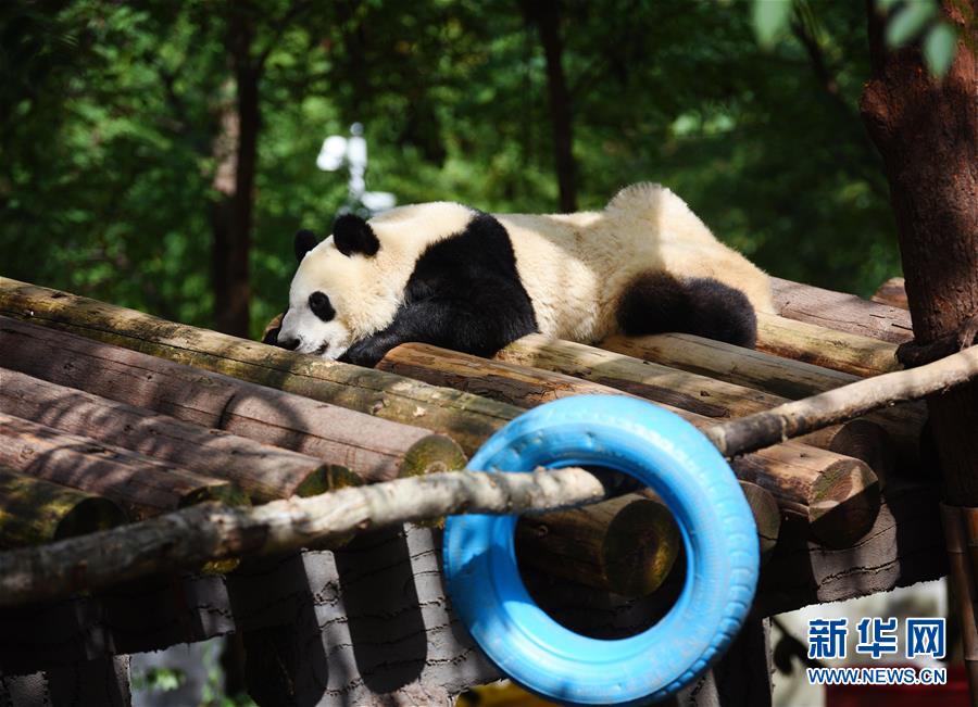 9月23日,大熊猫在秦岭大熊猫研究中心嬉戏。 秋日午后,阳光和煦,在秦岭大熊猫研究中心,萌态可掬的大熊猫们或午睡、或嬉戏、或打闹,尽享惬意时光。 秦岭大熊猫研究中心位于秦岭北麓的陕西省西安市周至县,生态环境优美,承担着秦岭大熊猫野外救助、疾病防控、种群繁育、饲养营养研究等任务,目前共有31只大熊猫在此生活,20多名专职饲养员照顾它们的起居。 新华社记者 刘潇 摄