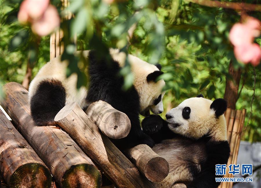 9月23日,大熊猫在秦岭大熊猫研究中心嬉戏。 秋日午后,阳光和煦,在秦岭大熊猫研究中心,萌态可掬的大熊猫们或午睡、或嬉戏、或打闹,尽享惬意时光。 秦岭大熊猫研究中心位于秦岭北麓的陕西省西安市周至县,生态环境优美,承担着秦岭大熊猫野外救助、疾病防控、种群繁育、饲养营养研究等任务,目前共有31只大熊猫在此生活,20多名专职饲养员照顾它们的起居。 新华社记者 刘潇 摄