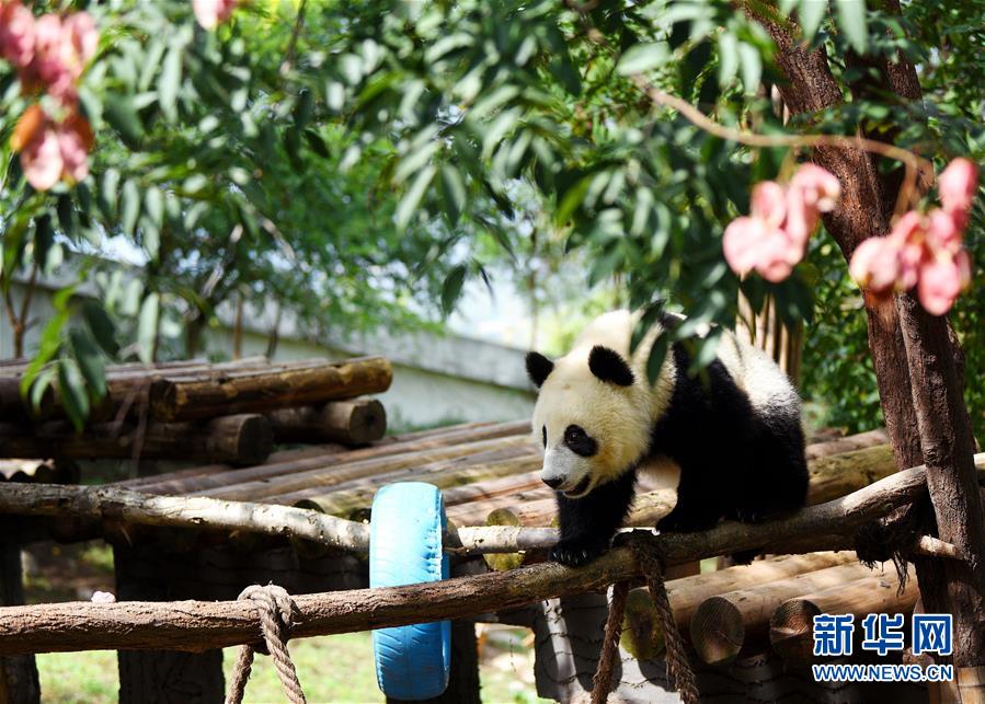 9月23日,大熊猫在秦岭大熊猫研究中心嬉戏。 秋日午后,阳光和煦,在秦岭大熊猫研究中心,萌态可掬的大熊猫们或午睡、或嬉戏、或打闹,尽享惬意时光。 秦岭大熊猫研究中心位于秦岭北麓的陕西省西安市周至县,生态环境优美,承担着秦岭大熊猫野外救助、疾病防控、种群繁育、饲养营养研究等任务,目前共有31只大熊猫在此生活,20多名专职饲养员照顾它们的起居。 新华社记者 刘潇 摄