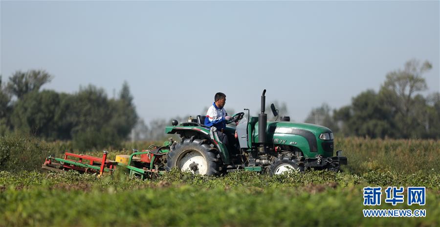 9月23日,台安县桑林镇桑林村一名村民驾驶农机收割花生。 目前正值辽宁省鞍山市台安县花生大面积收获的季节,广大农民抢抓农时,运用农业机械适时收获,田间地头一派繁忙景象。 新华社记者 姚剑锋 摄