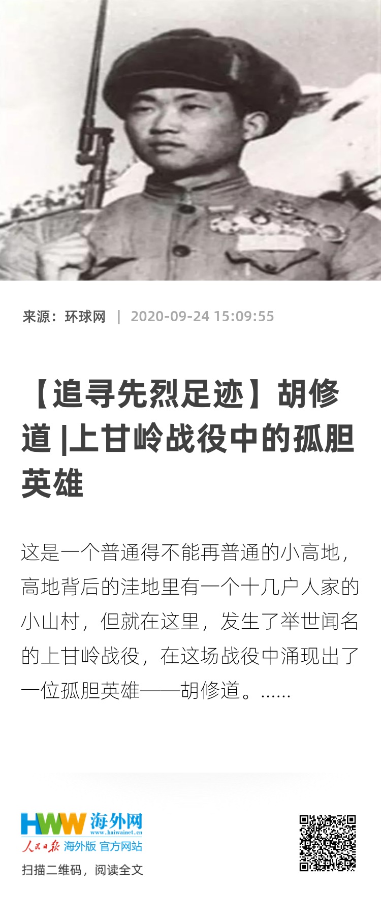 胡修道最后一个人坚守阵地,打退敌人41次冲锋,创造了单兵作战一天歼敌280余人的记录,不能不说这是战争史上的一大奇迹。