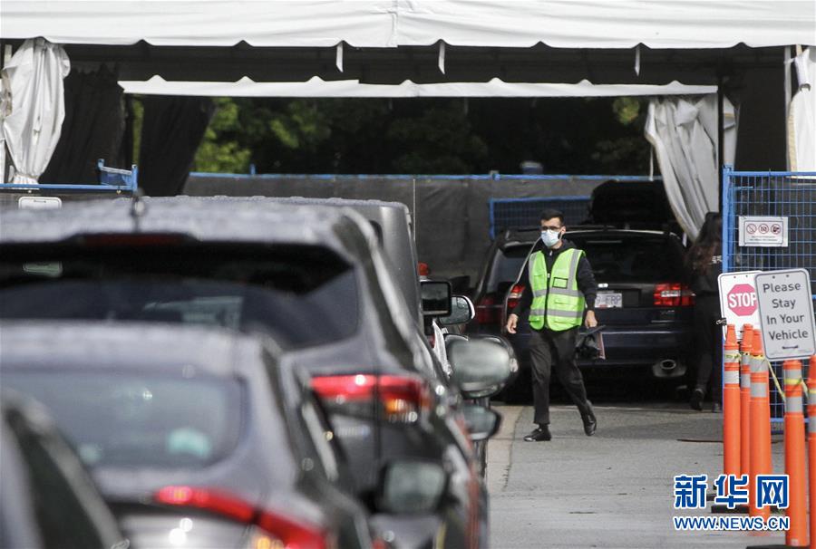 9月24日,在加拿大温哥华一处新冠病毒快速检测点,一名戴口罩的工作人员维持车辆秩序。 加拿大总理特鲁多23日说,加拿大已经进入第二波新冠疫情。过去一周,加拿大平均每日新增新冠病例大约1100例,远超8月中旬的平均每日380例。 新华社发(梁森摄)