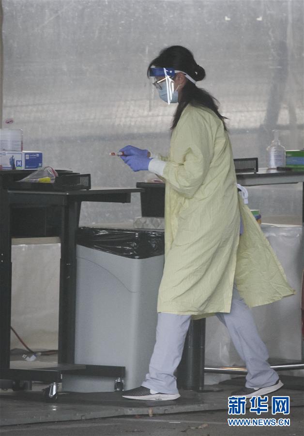 9月24日,在加拿大温哥华,一名医务人员在一处新冠病毒快速检测点内工作。 加拿大总理特鲁多23日说,加拿大已经进入第二波新冠疫情。过去一周,加拿大平均每日新增新冠病例大约1100例,远超8月中旬的平均每日380例。 新华社发(梁森摄)