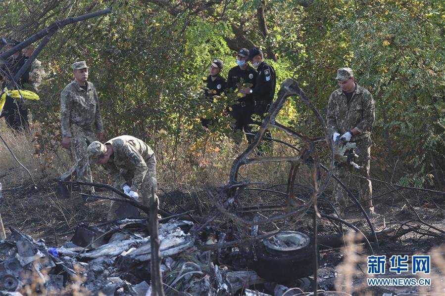 9月26日,工作人员在乌克兰哈尔科夫州的飞机坠毁现场清理残骸。 乌克兰国家紧急情况局称,截至当地时间26日上午,在哈尔科夫州发生的军用飞机坠毁事故造成的死亡人数已升至26人。一架安-26军用飞机当地时间25日晚在哈尔科夫州丘古耶夫市附近坠毁。 新华社发(谢尔盖·斯塔拉斯坚科摄)