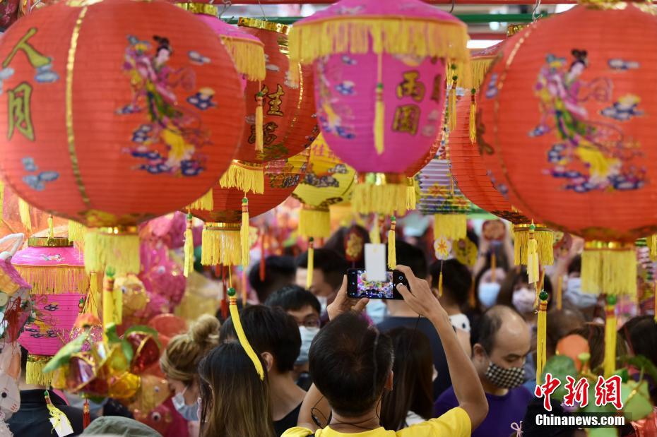 9月27日,大量市民入内选购心仪的传统灯笼。中秋节即将到来,位于香港元朗大桥街市的香烛小店布置成“灯笼街”,挂起数百个传统纸扎灯笼,吸引大量市民入内选购。 中新社记者 李志华 摄