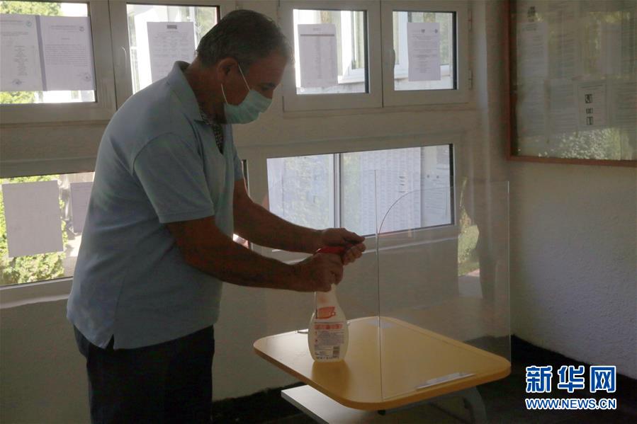 9月27日,在罗马尼亚首都布加勒斯特,一名佩戴口罩的男子进入投票站后用消毒液消毒双手。 当天,罗马尼亚举行因疫情推迟了3个月的地方选举投票,选举地方各级领导人。根据规定,选民需佩戴口罩,保持间距,进入投票站后首先用消毒液消毒双手,然后办理登记投票。 新华社发(彼得雷斯库 摄)