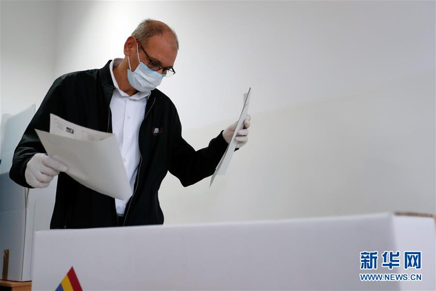 9月27日,在罗马尼亚首都布加勒斯特,一名戴着口罩和手套的男子将选票投入票箱。 当天,罗马尼亚举行因疫情推迟了3个月的地方选举投票,选举地方各级领导人。根据规定,选民需佩戴口罩,保持间距,进入投票站后首先用消毒液消毒双手,然后办理登记投票。 新华社发(克里斯泰尔 摄)