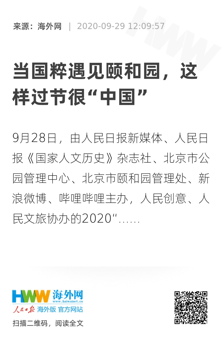 9月28日,由人民日报新媒体、人民日报《国家人文历史》杂志社、北京市公园管理中心、北京市颐和园管理处、新浪微博、哔哩哔哩主办,人民创意、人民文旅协办的2020“颐和园·戏游记”活动拉开帷幕。