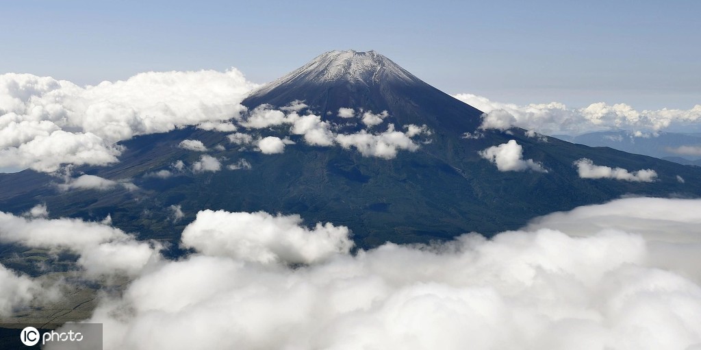 当地时间2020年9月28日,日本第一高峰富士山上午观测到今年首波积雪“初冠雪”,时间比往年早了2天,但比去年早了24天。山梨县甲府地方气象台表示,周末持续阴天及降雨的天气,直到今早放晴后,透过目视正式确认积雪。图片来源:东方IC