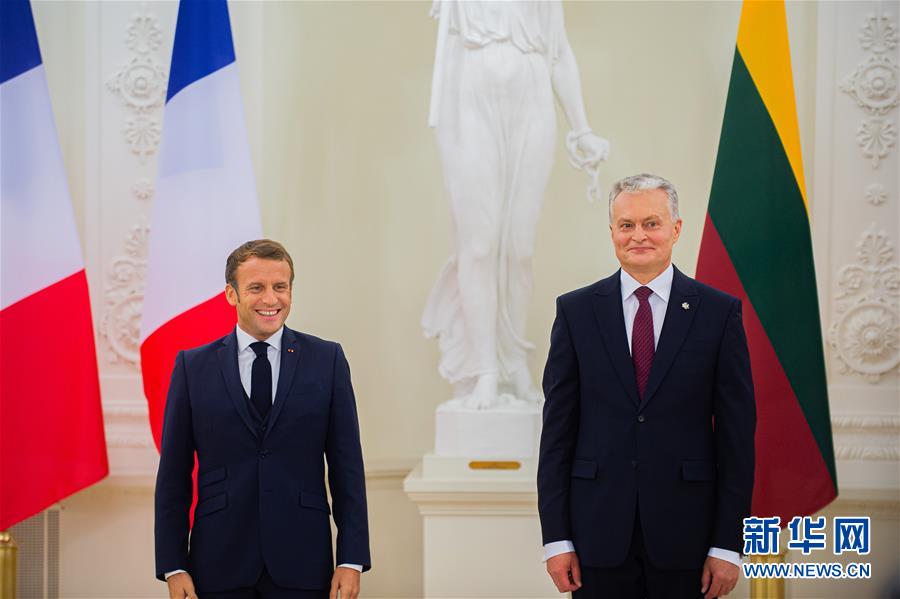 9月28日,在立陶宛维尔纽斯,立陶宛总统瑙塞达(右)和法国总统马克龙会面。 正在立陶宛访问的法国总统马克龙28日表示,要想确保欧洲的和平,必须与俄罗斯展开合作,法国支持与俄罗斯展开透明对话。 新华社发(阿尔弗雷达斯·普里亚迪斯 摄)