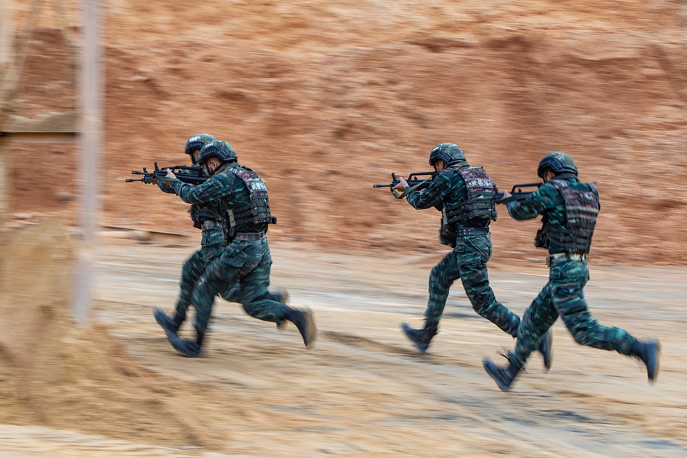9月27日,武警广西总队来宾支队组织特战队员在野外陌生地域开展武装奔袭、小组战术、极限体能等课目的训练,全面锤炼特战队员在复杂条件下的综合实战能力。(摄影:余海洋)