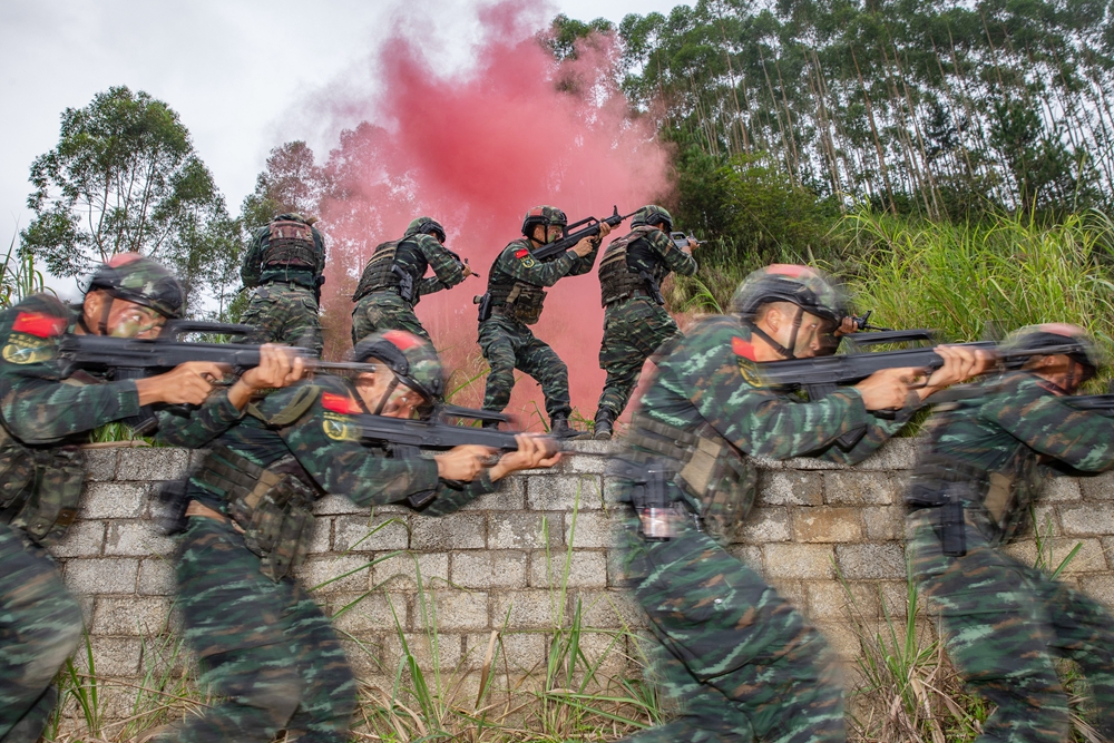 9月27日,武警广西总队来宾支队组织特战队员在野外陌生地域开展武装奔袭、小组战术、极限体能等课目的训练,全面锤炼特战队员在复杂条件下的综合实战能力。(摄影:余海洋)