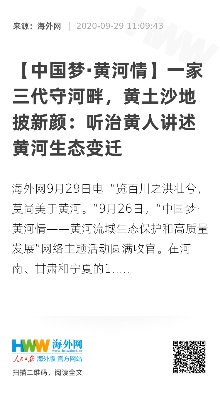 海外网9月29日电 “览百川之洪壮兮,莫尚美于黄河。”9月26日,“中国梦·黄河情——黄河流域生态保护和高质量发展”网络主题活动圆满收官。在河南、甘肃和宁夏的12天里,记者先后探访二十多个县市区,一览黄河流域在几代治理者手中绽放出的光芒。从黄土高坡上筑起的生态屏障,到坚守塞上江南的治沙线,曾经多灾多难的黄河流域如今在生态治理的努力下,成为了人民幸福生活的基石和源泉。