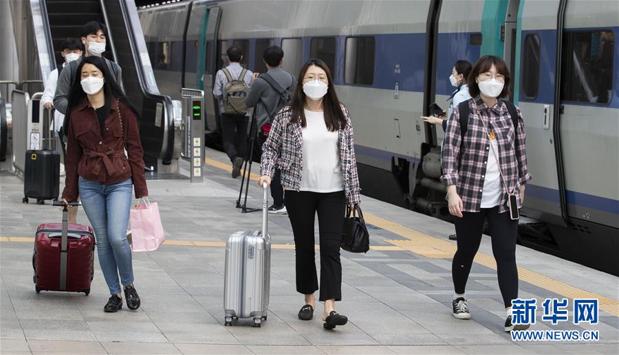 9月30日,在韩国首尔站,戴口罩的乘客们准备上车回家过节。 每年的农历八月十五也是韩国的中秋节,被称为“秋夕”,是韩国最重要的传统节日之一。今年的韩国秋夕假期为9月30日到10月4日。按照传统,人们要回家与亲人团聚,拜祀祖先,祭扫坟墓等。因为疫情的原因,尽管韩国政府呼吁今年秋夕假期尽量避免返乡过节,但依然有不少群众选择返乡。 新华社发(李相浩摄)