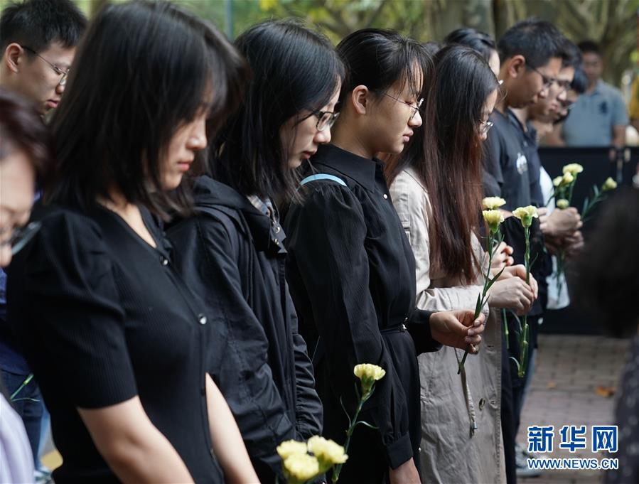 9月30日,“传承英烈志 铸就中华魂”——2020年上海交通大学烈士纪念日祭扫活动举行。这是在祭扫活动现场,上海交通大学的师生们默哀致敬英烈。新华社记者 刘颖 摄
