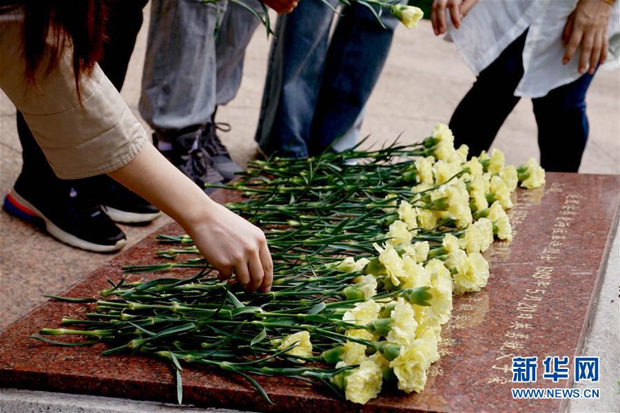 9月30日,“传承英烈志 铸就中华魂”——2020年上海交通大学烈士纪念日祭扫活动举行。这是上海交通大学的师生们向烈士墓碑敬献鲜花。 当日是第七个烈士纪念日,全国各地纷纷举行活动,缅怀革命先烈。 新华社记者 刘颖 摄