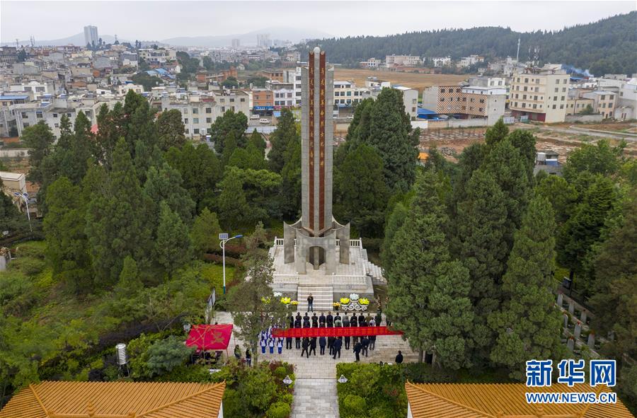 9月30日,云南省曲靖市马龙区在当地的马龙区烈士陵园举行公祭烈士活动,这是公祭活动现场(无人机照片)。 当日是第七个烈士纪念日,全国各地纷纷举行活动,缅怀革命先烈。 新华社发(陈欣波摄)