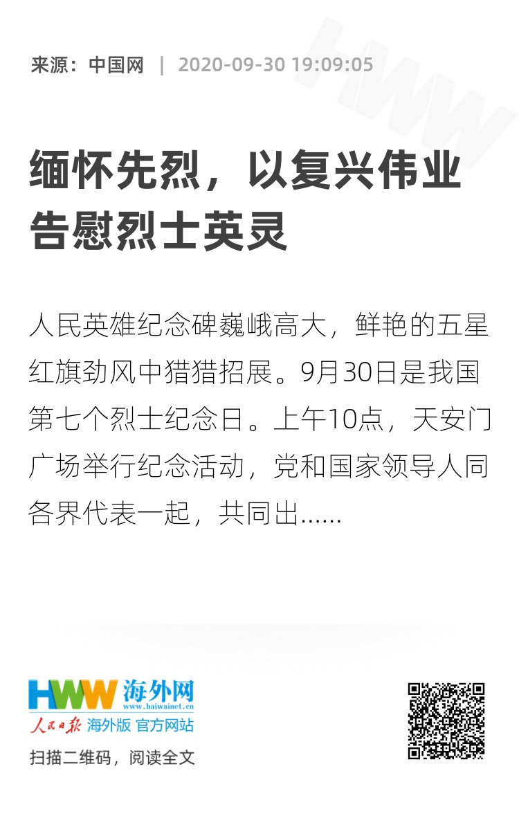 人民英雄纪念碑巍峨高大,鲜艳的五星红旗劲风中猎猎招展。9月30日是我国第七个烈士纪念日。上午10点,天安门广场举行纪念活动,党和国家领导人同各界代表一起,共同出席“烈士纪念日向人民英雄敬献花篮仪式”。习近平等党和国家领导人向人民英雄敬献花篮。近2000名各界群众代表参加了纪念活动。