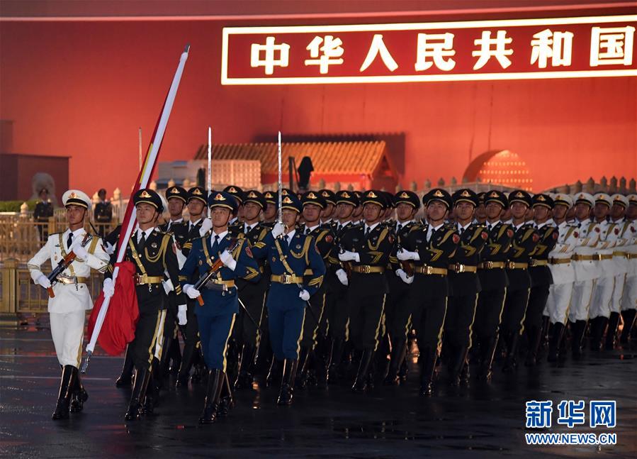 10月1日清晨,隆重的升国旗仪式在北京天安门广场举行,庆祝中华人民共和国成立71周年。 新华社记者 任超 摄