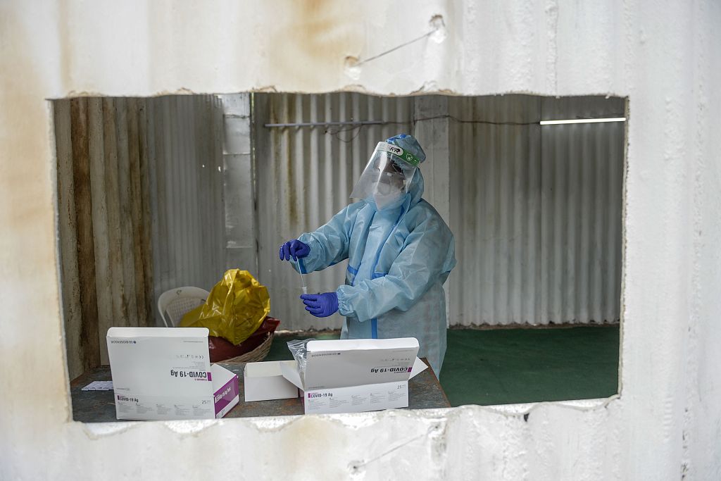 当地时间2020年10月1日,印度塞康德拉巴德,民众接受新冠病毒检测。据印度卫生部1日上午发布的消息,截至当地时间上午8点(北京时间10点半),印度新冠肺炎确诊病例达 6312584人,其中死亡病例98678人,治愈出院5273201人。来源:人民视觉