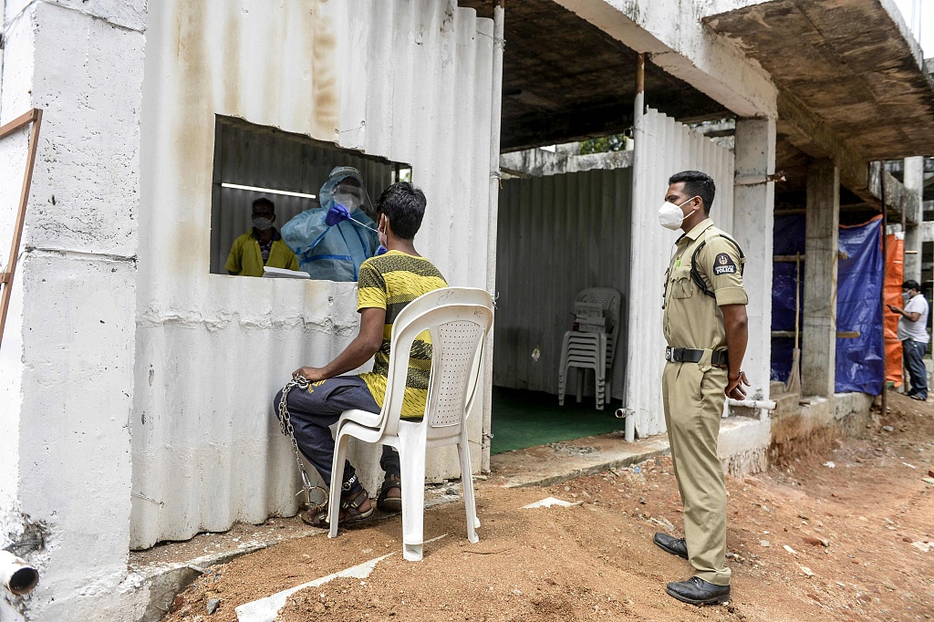 当地时间2020年10月1日,印度塞康德拉巴德,民众接受新冠病毒检测。据印度卫生部1日上午发布的消息,截至当地时间上午8点(北京时间10点半),印度新冠肺炎确诊病例达 6312584人,其中死亡病例98678人,治愈出院5273201人。来源:人民视觉